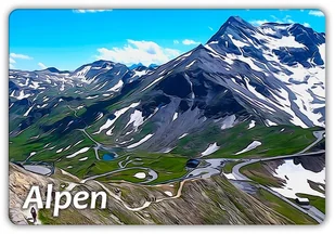 Magnes na lodówkę - Souvenir - Pamiątka Ilustracja: ALPY - Łańcuch górski Wymiar: 95 mm x 65 mm Grubość: 1,6 mm Narożniki: zaokrąglone Rodzaj magnesu: twardy...