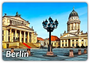 Magnes na lodówkę - Souvenir - Pamiątka Ilustracja: BERLIN - Plac Gendarmenmarkt - Centrum Berlina Wymiar: 95 mm x 65 mm Grubość: 1,6 mm Narożniki: zaokrąglo...