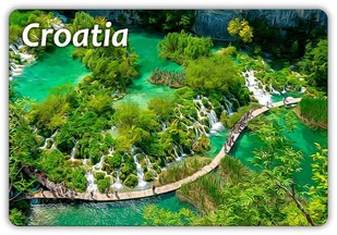 Magnes na lodówkę - Souvenir - Pamiątka Ilustracja: CHORWACJA - Jeziora Plitwickie Wymiar: 95 mm x 65 mm Grubość: 1,6 mm Narożniki: zaokrąglone Rodzaj magnes...