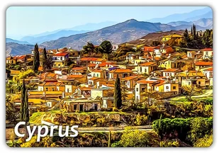 Magnes na lodówkę - Souvenir - Pamiątka Ilustracja: CYPR - Kato Dris - Wzgórze - Cyprus Wymiar: 95 mm x 65 mm Grubość: 1,6 mm Narożniki: zaokrąglone Rodzaj m...