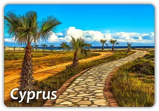 Magnes na lodówkę - Souvenir - Pamiątka Ilustracja: CYPR - Pejzaż - Krajobraz Wymiar: 95 mm x 65 mm Grubość: 1,6 mm Narożniki: zaokrąglone Rodzaj magnesu: tw...