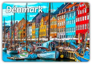 Magnes na lodówkę - Souvenir - Pamiątka Ilustracja: DANIA - KOPENHAGA - Łodzie - Centrum Wymiar: 95 mm x 65 mm Grubość: 1,6 mm Narożniki: zaokrąglone Rodzaj ...