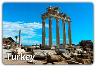 Magnes na lodówkę - Souvenir - Pamiątka Ilustracja: TURCJA - Side - Ruiny Wymiar: 95 mm x 65 mm Grubość: 1,6 mm Narożniki: zaokrąglone Rodzaj magnesu: twardy...