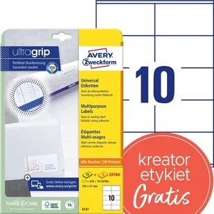 Trwałe etykiety papierowe 105 x 57 mm, białe etykiety samoprzylepne, etykiety do druku 30 ark. / op., Avery 6137