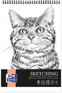 Oxford Artistic Blok Szkicowy Spiralny A3 KOT, 50 Kartek, Szkicownik do Sketchingu, Blok artystyczny 90g papier bezkwasowy, Zeszyt rysunkowy z solidną tylną okładką do rysowania i szkicowania ołówkiem