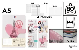 Cervantes Notatnik A5/144K magnes Paris MIX. Notatnik A5144k magnes MIXMiks wzorów i liniatur