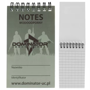 Dodatkowo strony są bardzo wytrzymałe i odporne na rozerwanie. Wykonany z impregnowanego papieru. Impregnacja nie wpływa na możliwość pisania w notesie – można pisać nawet na mokrych kartkach (ołówek, długopis, flamaster, kredki). Bindowany mocnym drutem – można wydzierać z niego poszczególne kartki. Notes umożliwi uwiecznienie cennych i szczegółowych informacji, sporządzanie szkiców sytuacyjnych oraz rozwinięte planowanie w każdych warunkach polowych.
