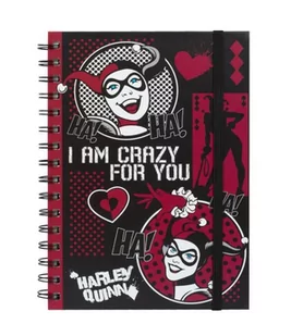 Kołonotatnik Harley Quinn I Am Crazy For You Notes na spirali z popularnym motywem. Okładka: Twarda, zadrukowana trwałą grafiką Wymiary: 14,8x21 cm, format A5 Strony: 160 w szeroką linię, każda kartka posiada grafikę związaną z głównym motywem Gramatura: 80g Marka: DC Comics Harley Quinn Producent:
