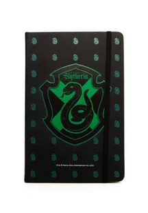 Notes A5 Harry Potter Slytherin Świetny gadżet który wykorzystasz zarówno w szkole, jak i w pracy. Idealnie sprawdzi się też jako dziennik czy pamiętnik. Twarda okładka, zadrukowana fotografią o intensywnych i wyrazistych barwach. 96 kartek w szeroką linię. Zamykany na kolorową gumkę.