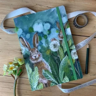 Ozdobny notatnik w formacie A5 z kartonową okładką i elastyczną gumką do zamykania. W środku znajduje się 96 stron w linie.