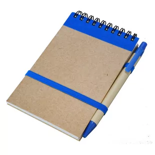 Notes z długopisem z 70 gładkimi kartkami. Karton użyty przy produkcji notesu i długopisu pochodzi z surowców wtórnych i mogą podlegać ponownemu przetworzeniu. Produkt wyprodukowano zgodnie z zasadami gospodarki niskoemisyjnej i przy użyciu małej ilości wody. Wkład w kolorze niebieskim.