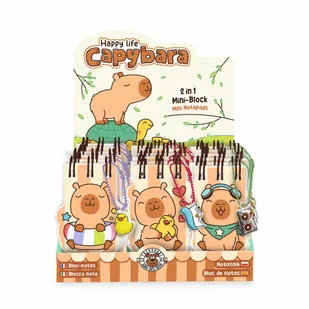 Notes mini 2w1 Kapibara 1szt. mix. Ten notatnik z efektowną holograficzną okładką można przymocować praktycznie wszędzie za pomocą łańcuszka kulkowego - do torby lub piórnika! Zawiera 24 wycinane kartki z uroczym wzorem kapibary (100 gm2) i 80 białych, prostokątnych kartek (80 gm2)Dodatkowo fajna. . .