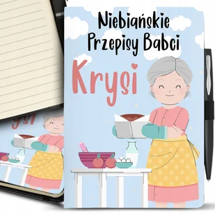 NOTES NOTATNIK A5 + DŁUGOPIS PRZEPIŚNIK NIEBIAŃSKIE PRZEPISY BABCI IMIĘ Wz