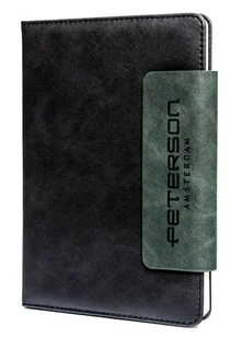 Notes w linie format A5 czarno - zielony PETERSON twarda okładka ze skóry ekologicznej magnetyczne zapięcie