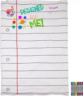 Poszewka na kołdrę z nadrukiem notatnika, którą możne dowolnie personalizować za pomocą 10 dołączonych do zestawu kolorowych pisaków. Co wyróżnia poszewkę eatsleepdoodle? Możliwość wielokrotnej personalizacji – po wypraniu i wysuszeniu jest jak nowa Pisaki w zestawie (10 szt.) - specjalne, zmywalne flamastry do tkanin Rekomendacja – polecana przez rodziców Jakie są właściwości poszewki? Zmywalna i reużywalna – wystarczy wyprać i można ponownie malować Ekologiczna – materiał wykonania to bawełna 100%, przyjazna dzieciom i środowisku, wielorazowego użytku Oryginalna – ciekawe wzornictwo i niebanalny charakter Multifunkcyjna – angażująca kolorowanka i praktyczna poszewka w jednym Parametry techniczne: Skład zestawu –bawełniana poszewka i 10 zmywalnych flamastrów Wymiary – 140 x 200 cm Materiał – 100% bawełna **Środki ostrożności: prać w temperaturze 40°, suszyć naturalnie Produkt jest wykonany z przyjaznej, stuprocentowej bawełny. Wystarczy wyprać i wysuszyć płótno, a kolorowana jest znów gotowa do następnej artystycznej podróży.