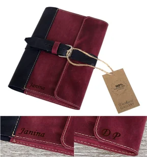 Skórzany notes A5 personalizowany kolor Borodowo-Granatowy