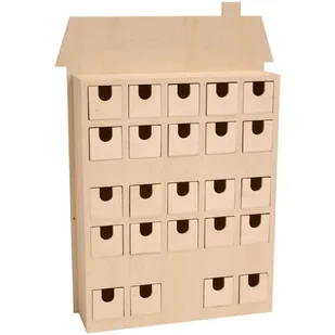 Ten drewniany kalendarz adwentowy do dekoracji ma oryginalny format, przypominający budynek. Ma wymiary 36 x 8,5 x 50 cm i składa się z 24 przegród odpowiada...