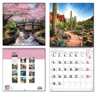 EV-Corp Kalendarz 2026 30x60 13 planszowy Ogrody. Kalendarz. kalendarz ścienny, 13-planszowy format po rozłożeniu 30 cm x 60 cm okładka wydrukowana na kredzie matowej o gramaturze 250gm2 i uszlachetniona lakierem środkowe plansze wydrukowane na kredzie matowej o gramaturze 250gm2 numeracja tygodni. . .