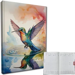 EV-Corp Kalendarz 2026 A5 tygodniowy rozkładówka Koliber. Kalendarz. * kalendarz formatu A5, układ tygodniowy, okładka aksamitna soft touch, papier chamois* każdy tydzień roku znajduje się na rozkładówce kalendarza* terminarze miesięczne na początku i na końcu kalendarza* podziału godziny 7: 00 -. . .