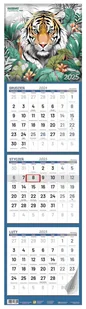 Kalendarz trzymiesięczny z okienkiem i wypukłą główką w dwóch różnych wzorach graficznych (kwiaty, tygrys). MIX WZORÓW