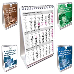 EV-Corp Kalendarz 2026 A5 biurkowy trójdzielny pion mix. Kalendarz. * kalendarz biurkowy trójdzielny* pionowy* układ: miesięczny z podglądem miesięcznym na miesiąc poprzedni i następny* wewnątrz imieniny, nazwy miesięcy w języku polskim, angielskim, niemieckim* spirala srebrna* doskonały do biura i. . .