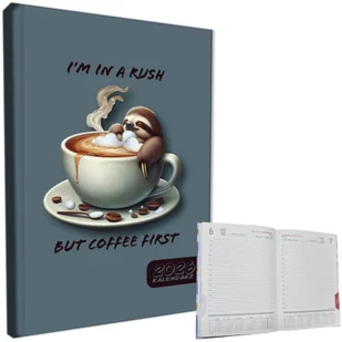 Kalendarz 2026 A5 dzienny sb/nd osobno Leniwiec. Kalendarz. kalendarz formatu A5, układ dzienny, okładka aksamitna soft touch, papier chamoiskażdy dzień roku znajduje się na osobnej stronie, sobota i niedziela także osobnoterminarze miesięczne przed każdym miesiącempodział godzinowy każdego dnia. . .