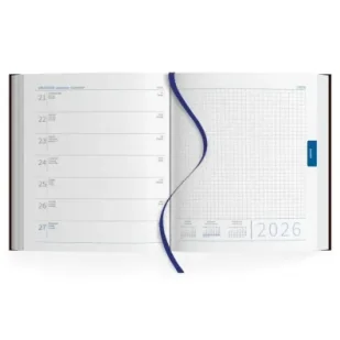 Format: B5 - 19 24 cm, 144 stronyUkład: jeden tydzień na stronie, druga strona notesDruk, papier: 2 kolory, papier 80 g/m2 w kolorze białymKalendarium: w języku polskim, angielskim, niemieckim, numeracja tygodni, podwójne imieninyCzęść informacyjna: plan roczny, miesięczny, skorowidz alfabetyczny, strefy czasowe i inne