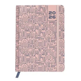 Kalendarz książkowy w twardej laminowanej oprawie ze wstążką i gumką zamykajacą. Układ kalendarium dzienny. 128 stron. Wymiary 135x190x10 mm
