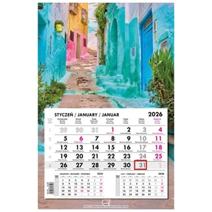 EV-Corp Kalendarz 2026 jednodzielny główka płaska Maroko. Kalendarz. * kalendarz ścienny, jednodzielny z główką płaską z zadrukiem na całych pleckach* wymiary: 31 x 48 cm* układ miesięczny z poprzednim i następnym miesiącem* posiada numerację tygodni, imieniny* nazwy miesięcy i dni tygodnia w. . .