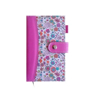 Kalendarz kieszonkowy w twardej skóropodobnej oprawie z zatrzaskiem. Układ kalendarium 4-dniowy.200 stron. Wymiary 92x150 mm