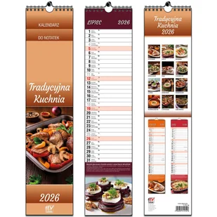EV-Corp Kalendarz 2026 paskowy 13 planszowy Kuchnia. Kalendarz. * kalendarz ścienny, paskowy, 13-planszowy* układ: miesięczny z miejscem na notatki* imieniny* nazwy miesięcy i dni tygodnia w języku polskim* spirala srebrna z zawieszką* idealny do użytku domowego* format: 11 x 48 cm
