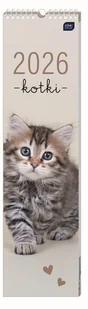 Kalendarz 2026 paskowy 13,5x50cm Koty. Kalendarz. Kalendarz na spirali o wymiarach 13,5x50 cm Kalendarium 1 miesiąc na stronie Zaznaczone imieniny, najważniejsze daty i święta Przy każdym dniu miejsce na krótkie notatki Dostępny w czterech wzorach