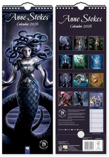 Kalendarz 2026 ścienny paskowy Anne Stokes. Kalendarz. Kalendarz ścienny o wymiarach 420 145 mm, zatytułowany Anne Stokes Slim Calendar 2026 (Art Calendar), wydany przez Flame Tree Publishing Motywem przewodnim są klimatyczne i fantastyczne ilustracje autorstwa Anne Stokes każdy miesiąc prezentuje. . .