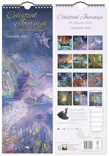 Kalendarz 2026 ścienny paskowy Niebiańskie podróże. Kalendarz. Kalendarz ścienny o wymiarach 420 145 mm, zatytułowany Heavenly Journeys Slim Calendar 2026 (Art Calendar), wydany przez Flame Tree Publishing Motywem przewodnim są pełne spokoju i mistycyzmu ilustracje przedstawiające niebiańskie. . .