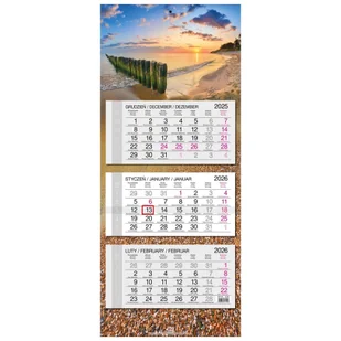 EV-Corp Kalendarz 2026 trójdzielny główka płaska Bałtyk. Kalendarz. * kalendarz ścienny, trójdzielny z główką płaską z zadrukiem na całych pleckach* wymiary: 33,5 x 79,4 cm* układ miesięczny z poprzednim i następnym miesiącem* posiada numerację tygodni, imieniny* nazwy miesięcy i dni tygodnia w. . .