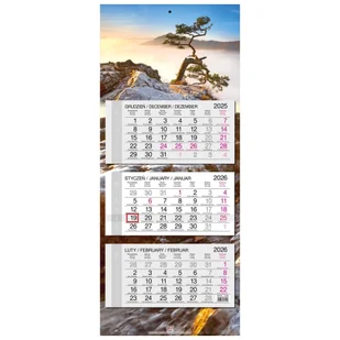 EV-Corp Kalendarz 2026 trójdzielny główka płaska Pieniny. Kalendarz. * kalendarz ścienny, trójdzielny z główką płaską z zadrukiem na całych pleckach* wymiary: 33,5 x 79,4 cm* układ miesięczny z poprzednim i następnym miesiącem* posiada numerację tygodni, imieniny* nazwy miesięcy i dni tygodnia w. . .