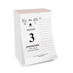 Kalendarz ścienny, na każdy dzień roku z kartkami do wydzierania. 736 stron z przepisami i poradami. Wymiary 85x130x35 mm