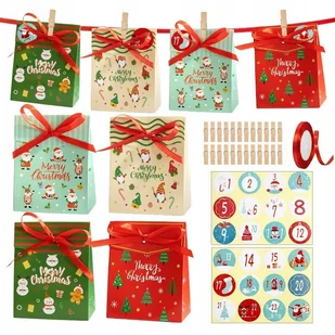 KALENDARZ ADWENTOWY Świąteczne Torebki Odliczanie Adwentowe Pudełeczka DIY Kalendarz Adwentowy Torebki Papierowe DIY Świąteczne Zestaw 24 Szt. Stwórz Wyjątko...