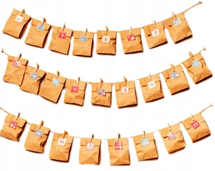 Kalendarz Adwentowy torebki na prezenty, słodycze eco 25 szt Torebki papierowe w kolorze brązowym z papieru eco Zestaw zawiera 25 torebek oraz arkusz z 25 sz...