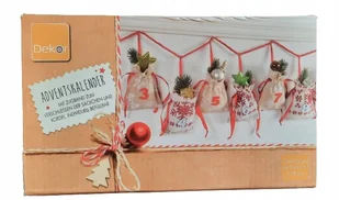 Kalendarz adwentowy 24 woreczki materiałowe wielkość woreczka 10 x13 cm długość całkowita 318 cm Opakowanie nosi ślady magazynowania WADA- rok 1 cm rozprucie...