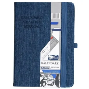 twarda wykonana z wysokiej jakości materiału skóropodobnegozamykany na gumkę w kolorze oprawygumka na długopis w kolorze oprawyzaokrąglone narożniki opraw i strondwie tasiemki w kolorze oprawypierwsze strony wewnątrz wraz z kopertą na tylnej oprawie w kolorze okładkiczytelny układ tygodniowy (tydzień na dwóch stronach)kalendarium od 11 sierpnia 2025 do 26 sierpnia 2026 Kalendarz wewnątrz zawiera: