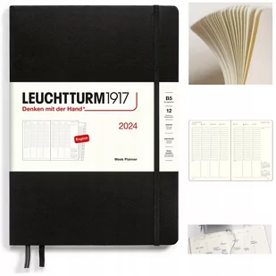 Planer tygodniowy pionowy - 12 miesięcy - 2024 - czarny (Black) Planer Leuchtturm1917 tygodniowy pionowy to wysokiej klasy produkt w rozmiarze B5 i twardej oprawie. Papier ma odcień kości słoniowej, jest bezkwasowy i bez optycznych wybielaczy, idealny do pisania piórem. Zaprojektowany, by pomóc wykorzystać każdy dzień i o niczym nie zapomnieć. Na każdej podwójnej stronie tydzień kalendarzowy. Planer tygodniowy rozpoczyna się od stycznia i obejmuje 12 miesięcy (od 01.2024 do 12.2024).