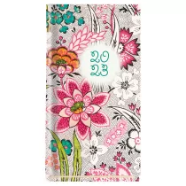 T-320F TERMINARZ KOLIBER format: 75x130 mm rodzaj papieru: offset 70g/m2 biały układ kalendarium: 1 tydzień - 2 strony ilość stron: 128 druk: 2 kolory Oprawa: twarda, okładka barwna foliowana, jedna tasiemka.
