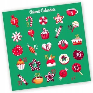 NA TEJ AUKCJI KUPUJESZ 1 ARKUSZ Z NAKLEJKAMI WYMIARY ARKUSZA: 20 x 20 CM WYMIAR 1 NAKLEJKI: okolo 4X4 CM Kalendarz adwentowy świetnie sprawdzą się przy dekor...