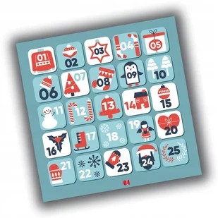 NA TEJ AUKCJI KUPUJESZ 1 ARKUSZ Z NAKLEJKAMI WYMIARY ARKUSZA: 20 x 20 CM WYMIAR 1 NAKLEJKI: okolo 4X4 CM Kalendarz adwentowy świetnie sprawdzą się przy dekor...