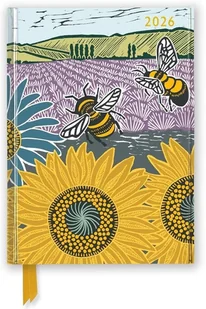 Terminarz 2026 A5 Pole słoneczników Kate Heiss TW. Kalendarz. Terminarz tygodniowy na rok 2026, zatytułowany Kate Heiss: Sunflower Fields 2026 Luxury Diary Planner, wydany przez wydawnictwo Flame Tree Publishing Motywem przewodnim są grafiki linorytowe autorstwa Kate Heiss, przedstawiające pola. . .