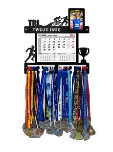 Wieszak na medale TRI MAN z kalendarzem i ramką na zdjęcie imię 413.1 Wieszak na medale to świetne rozwiązanie dla każdego, kto nie chce chować swoich osiągn...