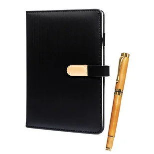 Zestaw prezentowy, który łączy elegancję z funkcjonalnością. Stylowy, czarny notes w formacie A5 w linie oraz dopasowany długopis ze złotymi detalami i wymiennym wkładem. Całość zapakowana jest w eleganckie firmowe pudełko.