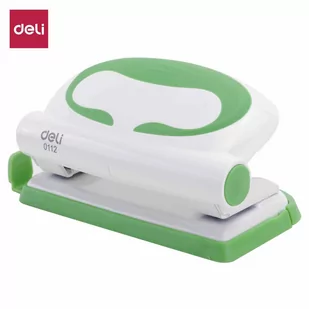 Metalowy dziurkacz Deli do 10 kartek Dziurkacz Deli 0112 jest niezwykle zgrabny i poręczny, a lśniący biały lakier z dodatkiem zielonych detali sprawi, że produkt rozjaśni przestrzeń energetycznymi barwami przełamanymi bielą. Oferowany model jest w stanie jednorazowo przedziurkować do 10 kartek papieru o standardowej grubości. Jest to bardzo poręczny i ergonomiczny dziurkacz. Jego niewielkie rozmiary idealnie wpasowują ten model do zastosowań domowych i prostych prac biurowych. Wyposażony jest w wysuwaną plastikową linijkę ze znacznikiem stopującym , który dokładnie wskaże miejsce dziurkowania i wyznaczy środek arkuszu papieru.