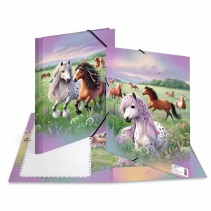 Folder narożny "Świat koni", karton, DIN A4- Czuły, delikatny i czarujący!- nowa seria w świecie motywów HERMA- czarujące motywy, ilustrowane z wielką miłością- Teczka wykonana z wytrzymałego kartonu- uniwersalny motyw- 3 zadrukowane klapki- z elastycznym zaciskiem narożnymPrzykłady zastosowania: